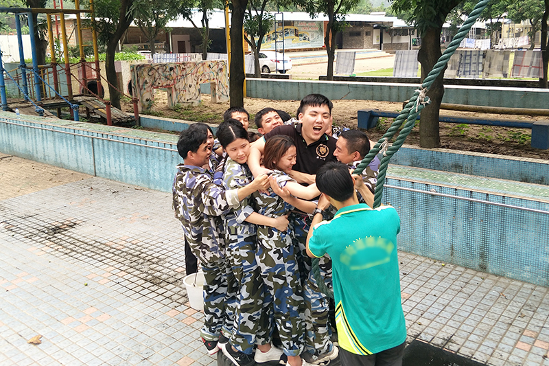 最震撼的要屬活動最后的同心圓項目,全部人員,在教練指引下共同圍成一個大圓圈,齊心合力不停頓搖動同一條繩子1200下。團隊成員通過活動增強了共同的目標感,熱情與火力,強調(diào)目標步伐高度一致;讓隊員更能清楚自己在團隊中的作用,從而更加的肯定自己;肯定團隊對自己的幫助,在超難度的體驗挑戰(zhàn)中正確認識自己,并將團隊精神推向高潮。