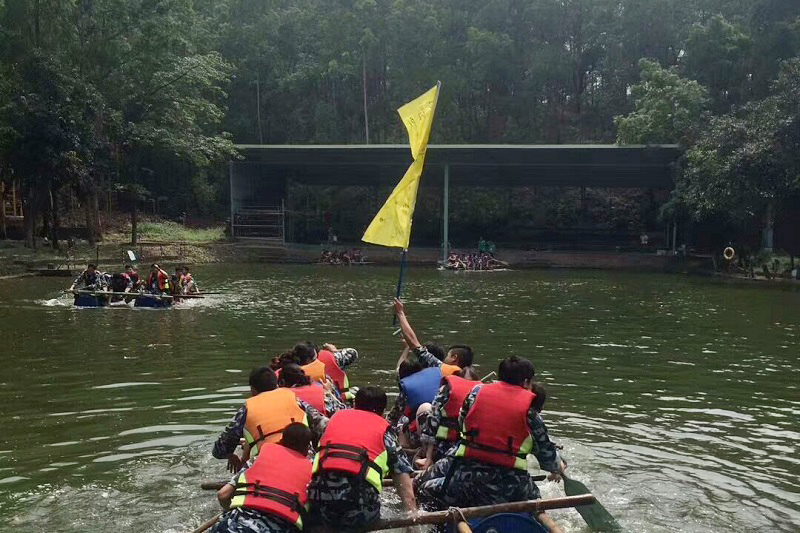 活動最后一天的搶灘登陸環(huán)節(jié)可謂是最考驗團隊組織力、協(xié)作力了,要造一只能夠載十三個成年人的船只并下水到對岸奪隊旗,并且要神速,爭取團隊取得最后的勝利。這考驗著團隊在接到一個新的任務時對方案策劃、時間管理和分工實施的把控能力,考驗團隊之間的協(xié)作精神和創(chuàng)新思維。